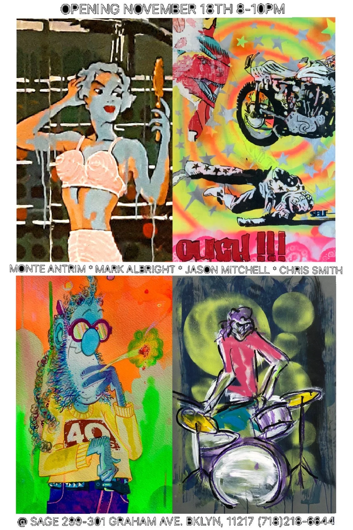 Please join us for a group show of 4 artists who've lived in the same vicinity and have gotten drunk at the same bars for 20-odd years.
